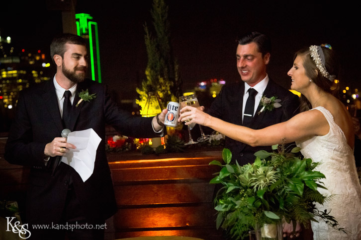 Chris and Annemarie had a blast at their wedding at Dec on Dragon in Dallas. It was a beautiful day and so much love was shared. It really makes my heart happy as a wedding photographer to get to capture such memorable moments for couples and this wedding at Dec on Dragon was full of them.One of my favorite moments to have captured was the bridesmaids praying over Annemarie before the ceremony. The tears of happiness they shared made it so sweet. Their ceremony was perfect on the rooftop overlooking the Dallas Skyline. So many laughs were shared as they read their vows to one another and pledged their commitment with rings. After family photos concluded, everyone took their seats overlooking Dallas, and watched the newlyweds dance together for the first time. They then shared such sweet dances with their parents before sharing laughter with their friends while they were toasted. Then everyone partied and had a blast dancing the night away.