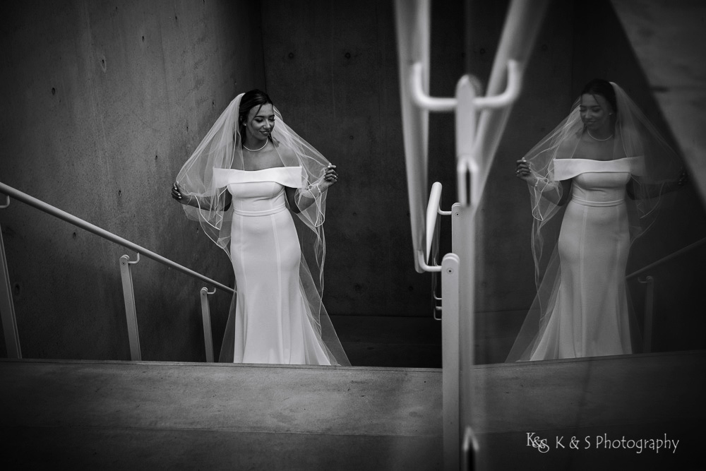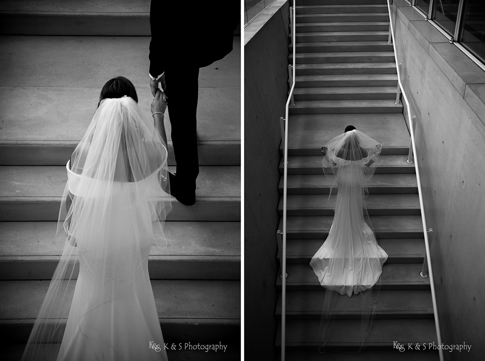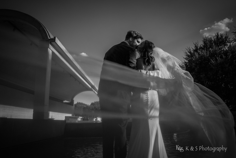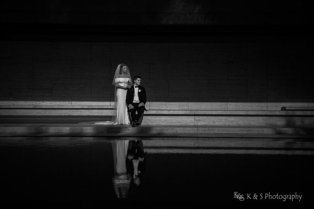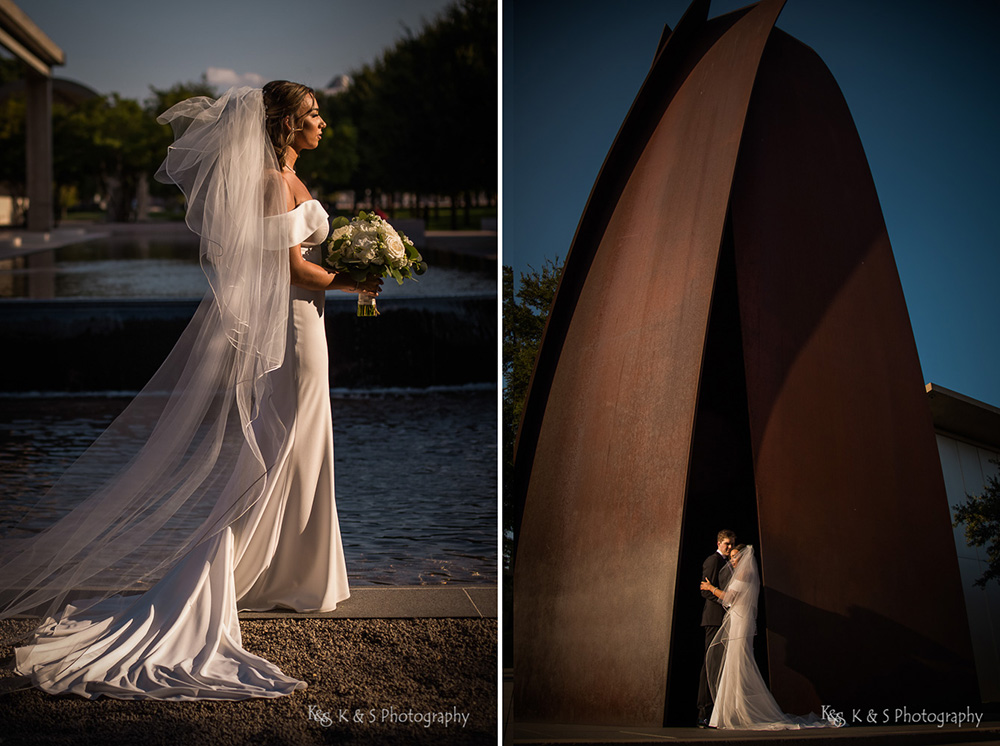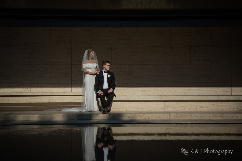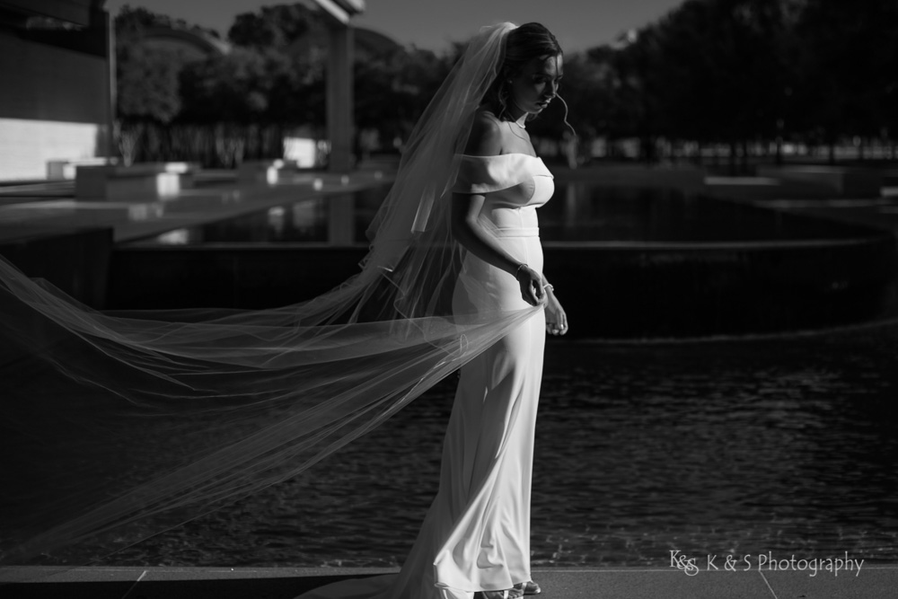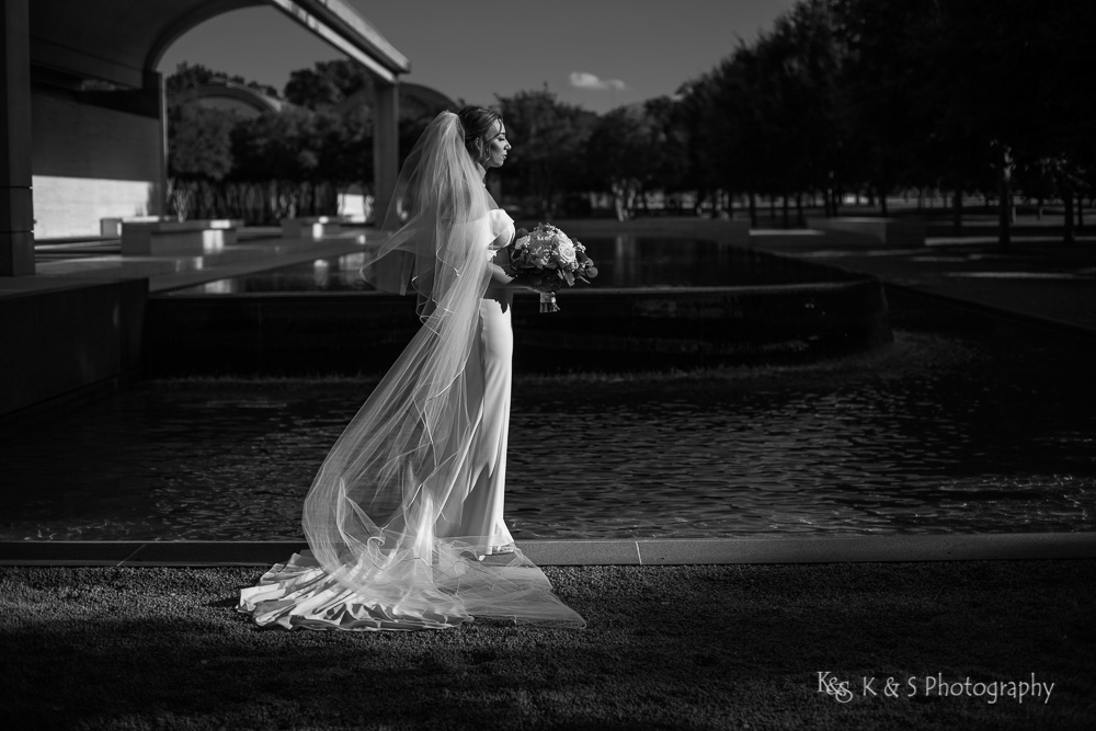 The reflection pool in front allowed for visual interest and added a complexity to the images while still keep it simple. Also, the lighting was just perfect to really put emphasis on Jackie and her beautiful dress and cathedral length veil. I really appreciate brides, like Jackie, who allow me the space to bring a vision to light and the wedding photos taken in Fort Worth are really some of my favorite. So take a look and enjoy the images.