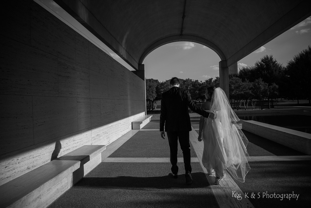 I had so much fun getting to take these wedding portraits for Jackie and Josh and we met up in Fort Worth. I just fell in love with the classic, old Hollywood vibe of Jacke’s wedding dress and wanted the photography for the portraits to have an old 30’s style. The Kimbell Art Museum was perfect because of the architecture there and it really fit the aesthetic. I’ve always been drawn to street photography and especially the works of Gordon Parks and Henri Cartier Bresson and loved that Jackie trusted me with that vision.