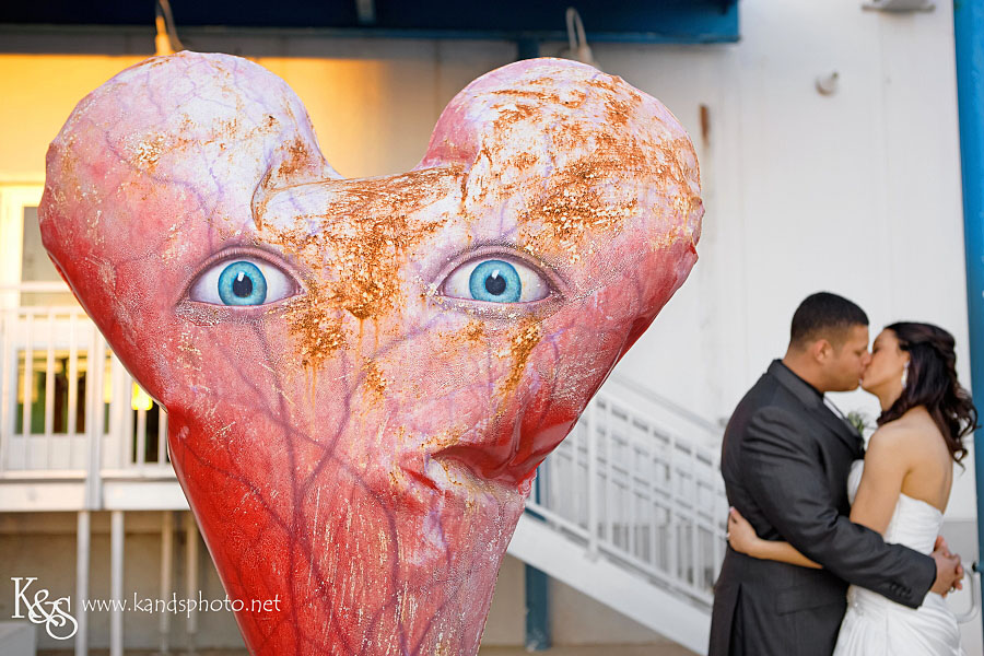 This heart sculpture/statue was in front of Brandi and Britton’s wedding reception venue, the Louise Hopkins Underwood Center for the Arts. I find it strange but oddly I kinda like it so I wanted to take pictures of Britton and Brandi with it. I know some might be creeped out by the eyes and yeah I agree but again I thought it was kinda cool.